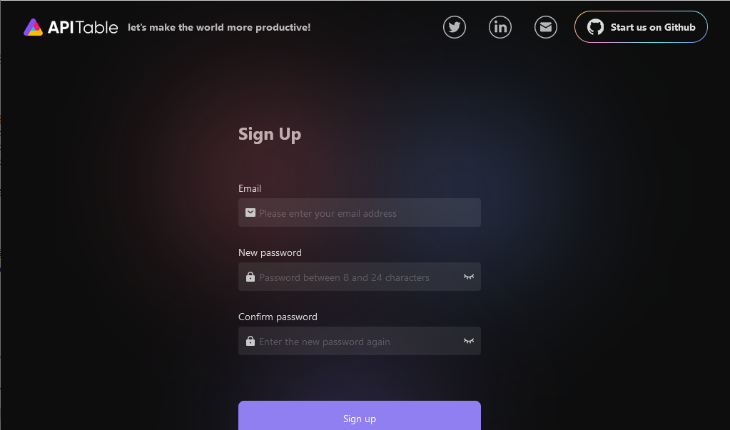 使用本地电脑浏览器访问后,进入 AITable 首次注册页面
