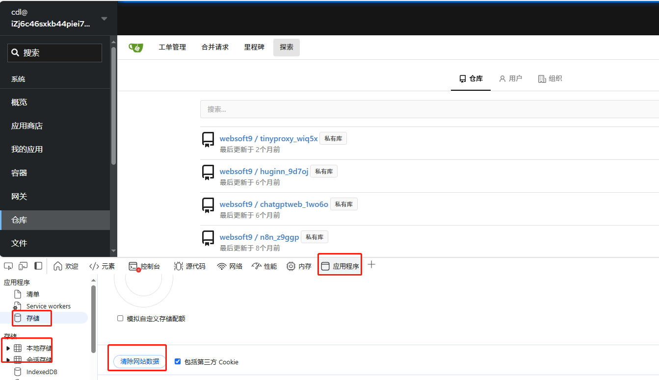 描述:登录 Websoft9 后,网关、仓库等功能界面进不去,显示网络超时的错误