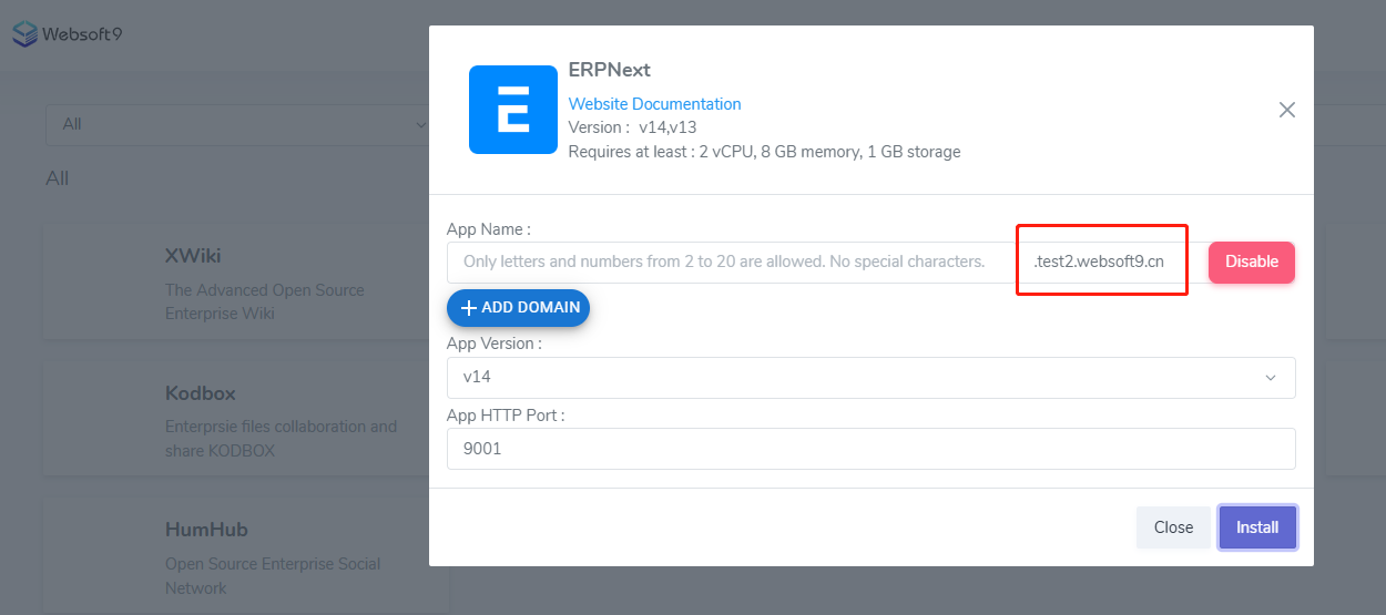 Install any application from Websoft9 App Store, there have automaticlly create subdomain