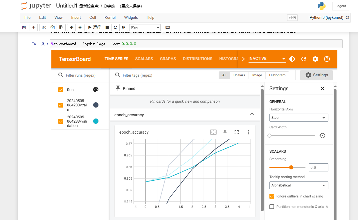 Refer to Using TensorBoard in Notebooks, and run the example programs in sequence. Add the parameter